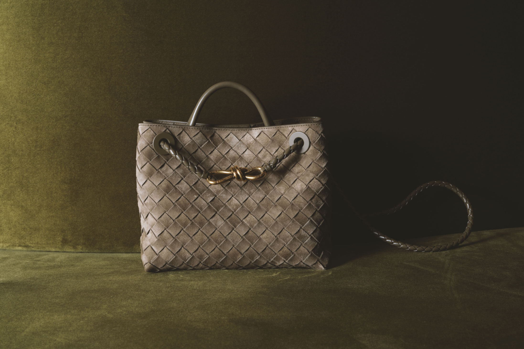 This Bottega Veneta bag in rich olive-green suede is a refined take on everyday luxury. Featuring the iconic Intrecciato weave, it comes with a structured top handle and a removable sliding shoulder strap detailed with a signature metal knot. Inside, you’ll find a magnetic flap closure, a single roomy compartment, and a removable zip pouch with two interior pockets. Available now at BOYGAR'S. |